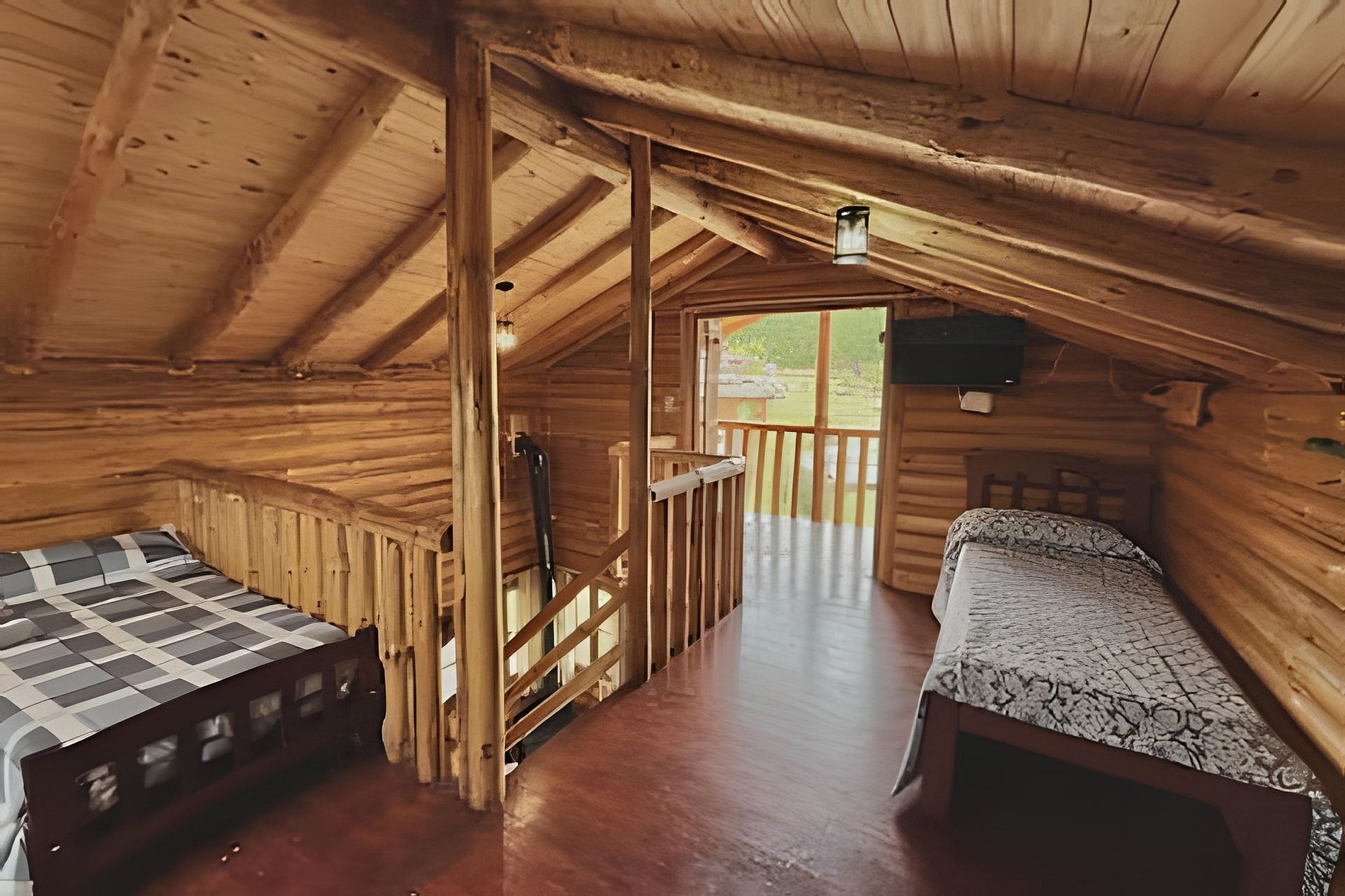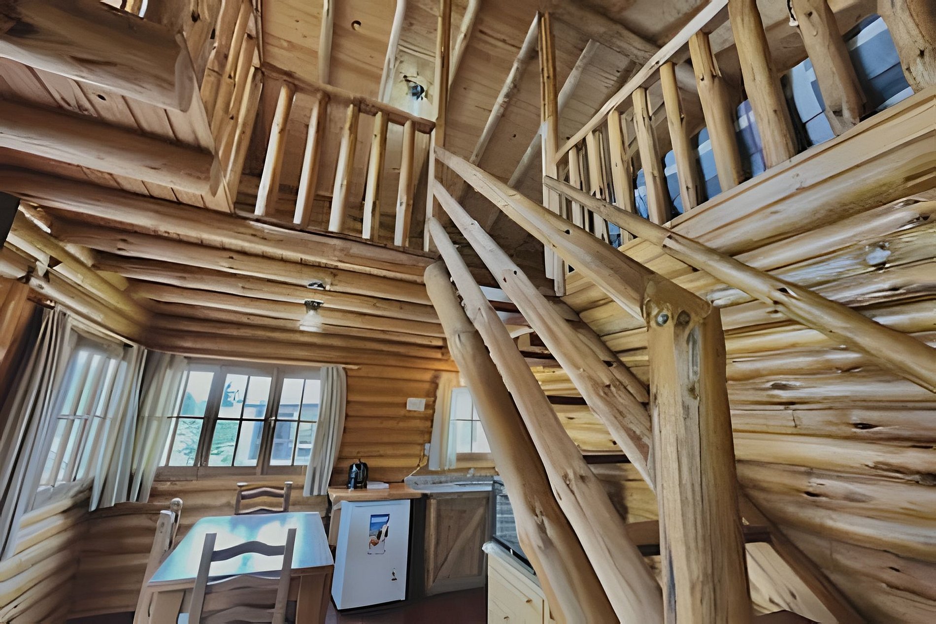 Imagina despertar con el canto de las aves y el suave susurro del arroyo, con vistas panorámicas de 360° de montañas majestuosas. Nuestra cabaña está equipada con una kitchenette pequeña y comedor, donde la cocina es con anafe o estufa, La sala acogedora cuenta con una salamandra a leña, la cual proveemos y mantiene el ambiente cálido y acogedor en todo momento. El dormitorio matrimonial esta en la planta baja y en la planta alta hay un amplio dormitorio con cuatro camas de una plaza, televisor con DirecTV, WiFi y un balcón con hamaca mecedora para descansar y contemplar la naturaleza.