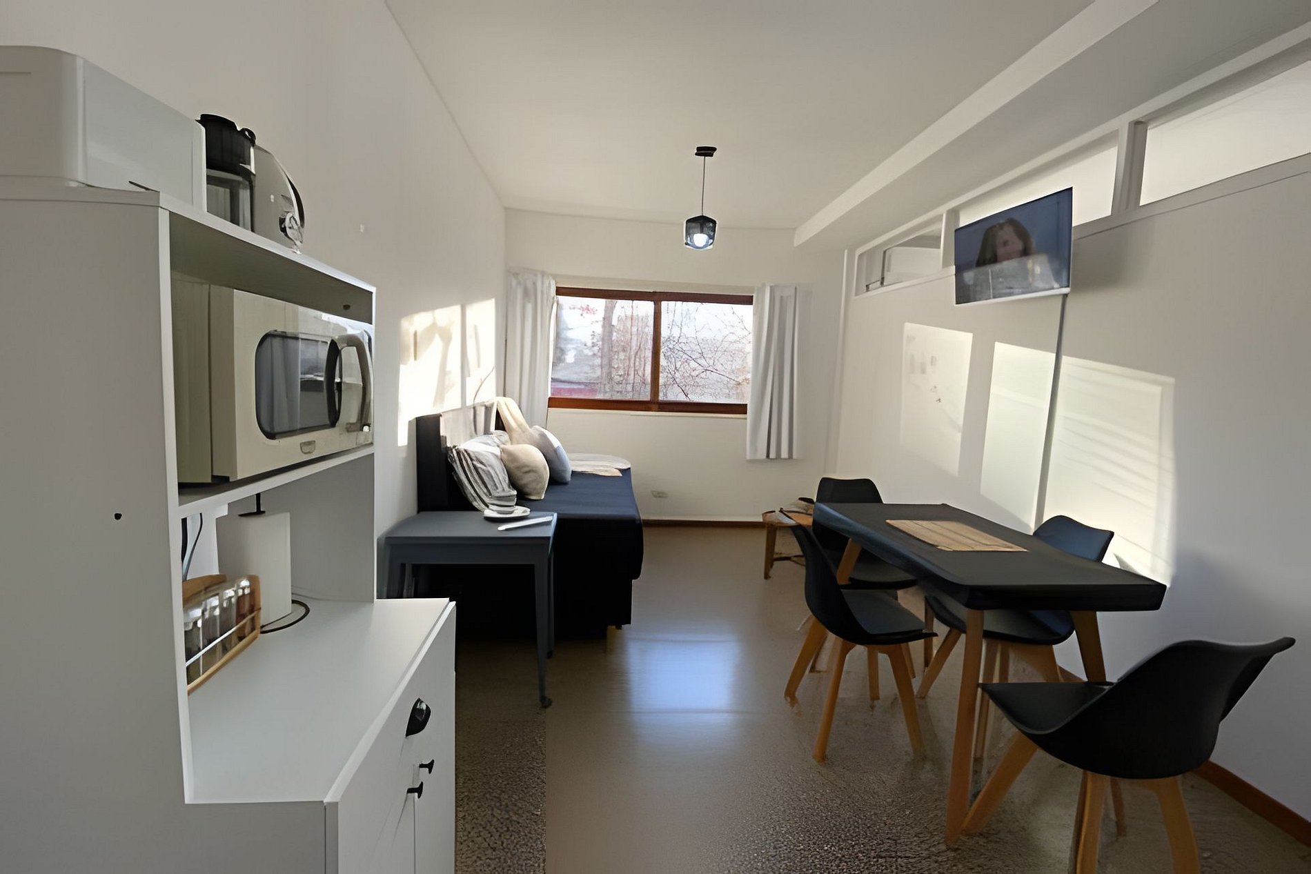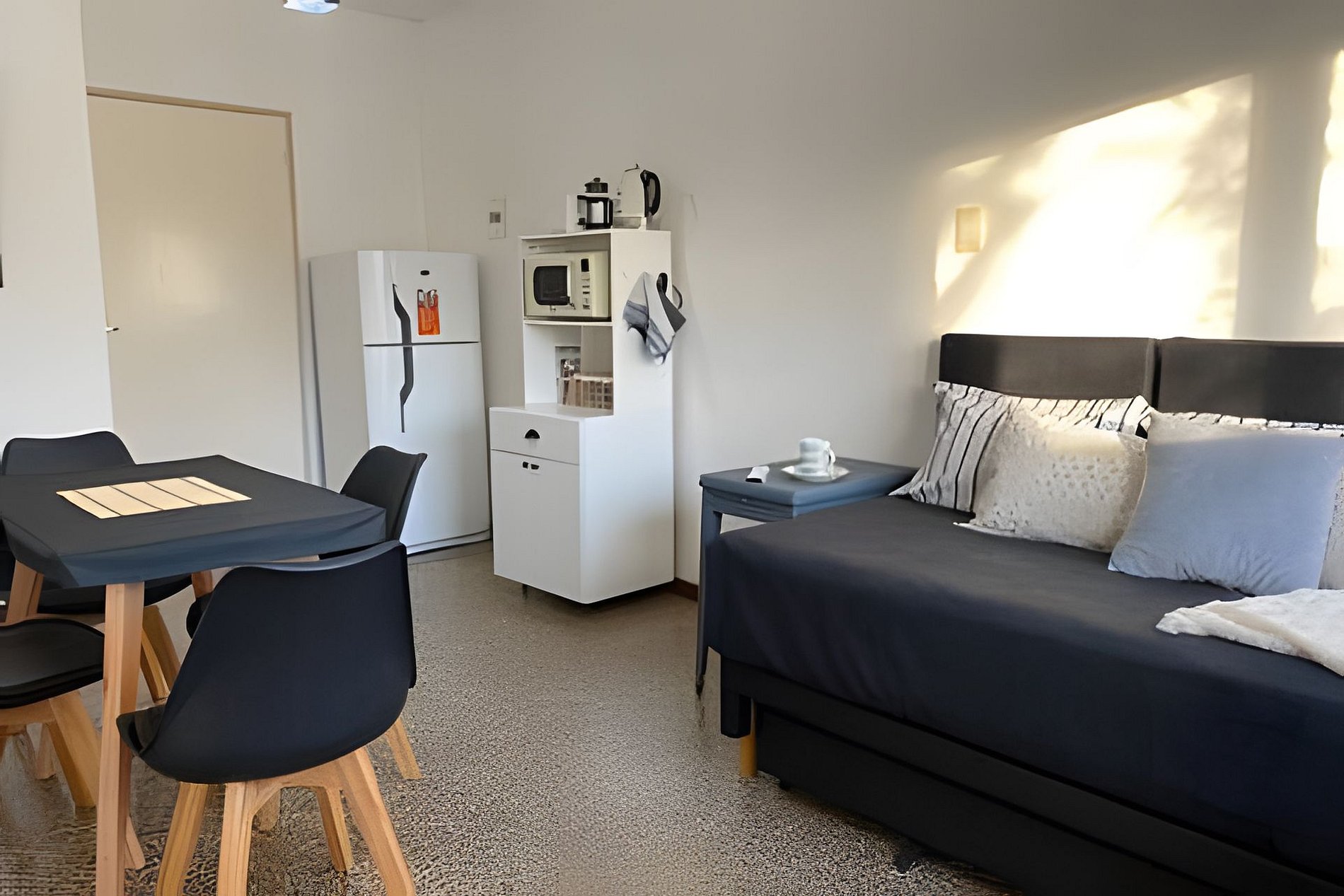El departamento ubicado en un 1 piso cuenta con calefacción split fio y calor en dormitorio y estar comedor. El Living comedor cuenta con un sofá-cama con un colchón extra confort de una plaza y una cama carro. Un Living comedor para cuatro personas con una terminal equipada con microondas, jarra eléctrica tostadora, heladera con freezer. El dormitorio cuenta con una cama King size súper confort y almohadas de excelente calidad para disfrutar de un gran descanso y con baño en suite . La cocina se encuentra en un ambiente totalmente diferente y está completa, con horno, hornadas y muy bien equipada . Cochera techada a pasos del departamento con seguridad a las 24 horas, para auto o camineta