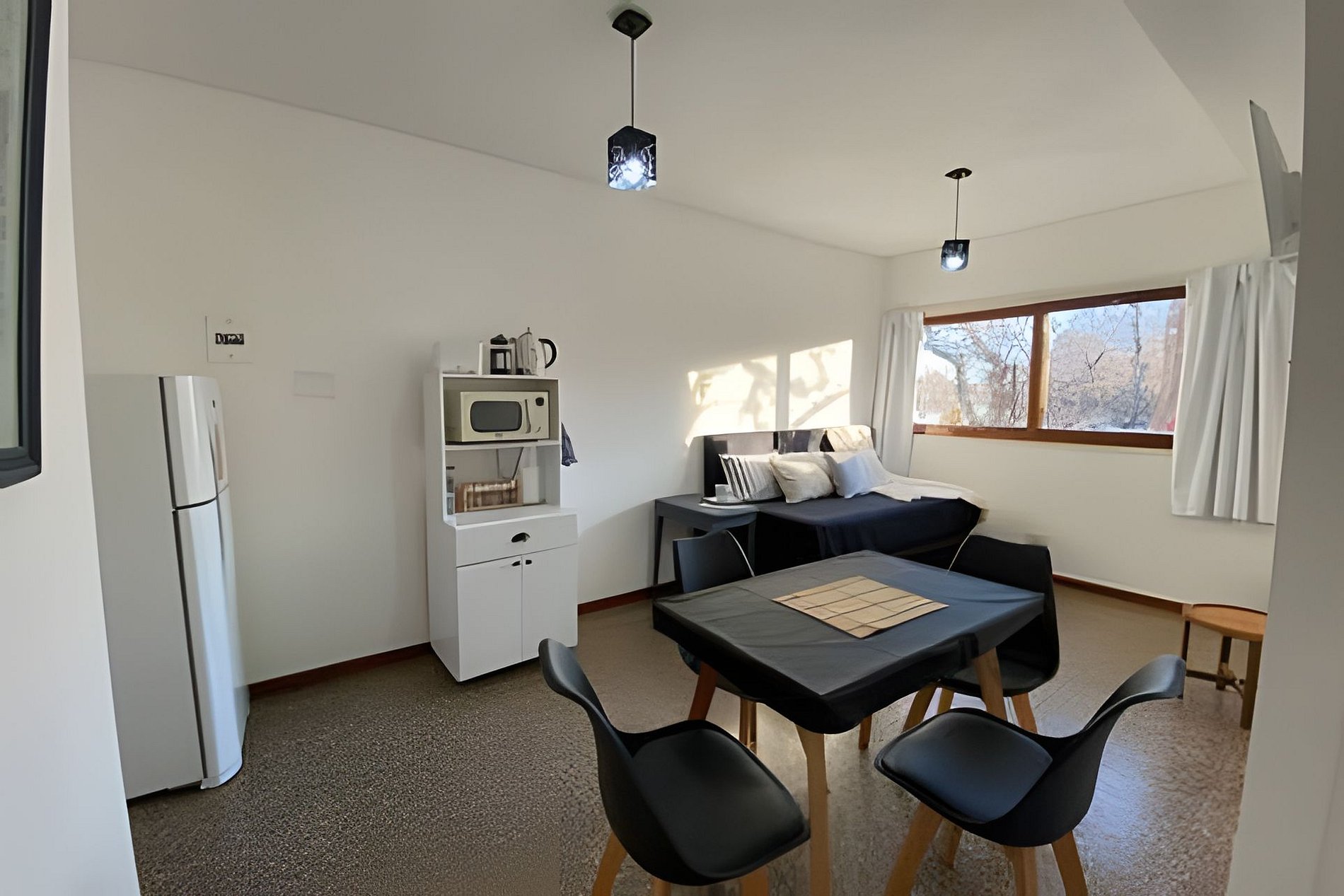 El departamento ubicado en un 1 piso cuenta con calefacción split fio y calor en dormitorio y estar comedor. El Living comedor cuenta con un sofá-cama con un colchón extra confort de una plaza y una cama carro. Un Living comedor para cuatro personas con una terminal equipada con microondas, jarra eléctrica tostadora, heladera con freezer. El dormitorio cuenta con una cama King size súper confort y almohadas de excelente calidad para disfrutar de un gran descanso y con baño en suite . La cocina se encuentra en un ambiente totalmente diferente y está completa, con horno, hornadas y muy bien equipada . Cochera techada a pasos del departamento con seguridad a las 24 horas, para auto o camineta